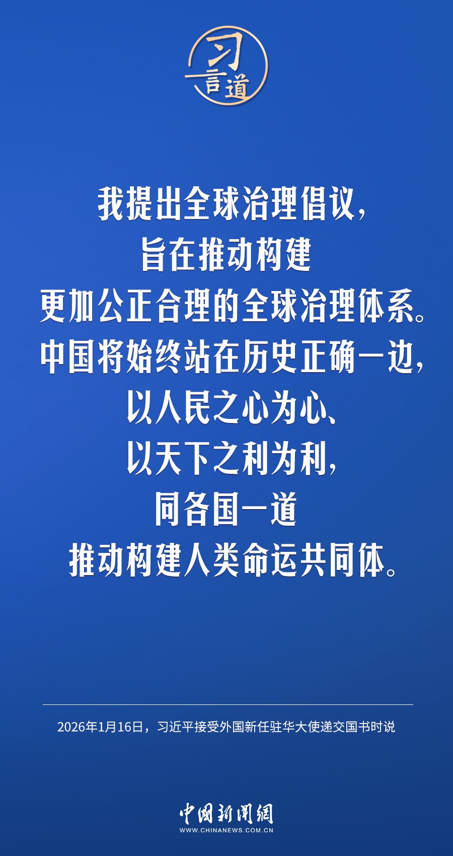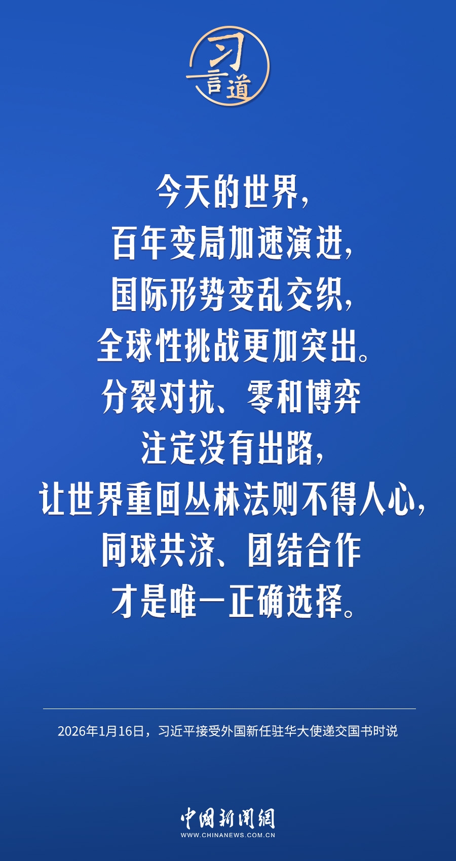 1月16日,国家主席习近平在北京人民大会堂接受18位驻华大使递交国书。仪式结束后,习近平在北京厅对使节们发表讲话。习近平指出——