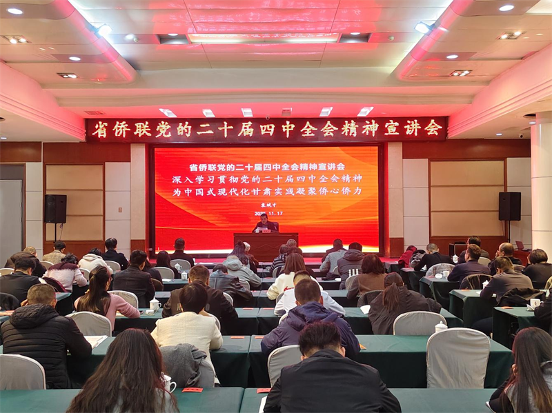 11月17日,省侨联在兰州举办党的二十届四中全会精神宣讲会。省侨联主席袁斌才围绕学习贯彻习近平总书记在全会上的工作报告、重要讲话和“十五五”规划建议,从全会的基本情况、《建议》起草过程、全会的重大意义、“十四五”时期取得的重大成就,“十五五”时期在基本实现社会主义现代化进程中的重要地位,“十五五”时期经济社会发展的指导方针和主要目标、战略任务和重大举措,坚持和加强党的全面领导等方面作了宣讲。